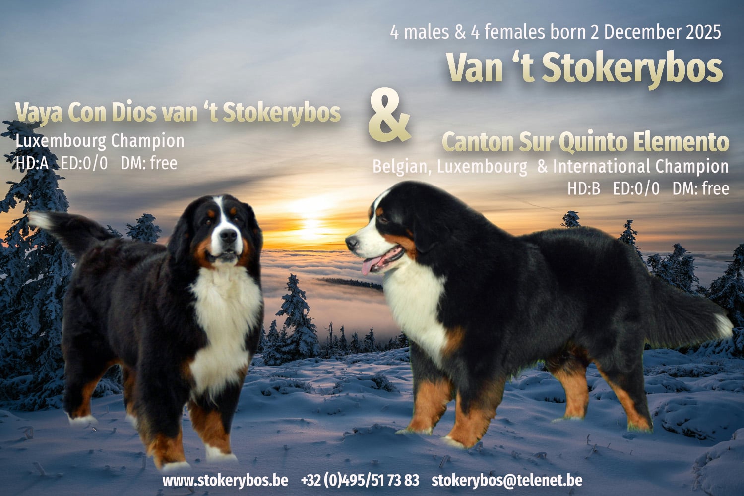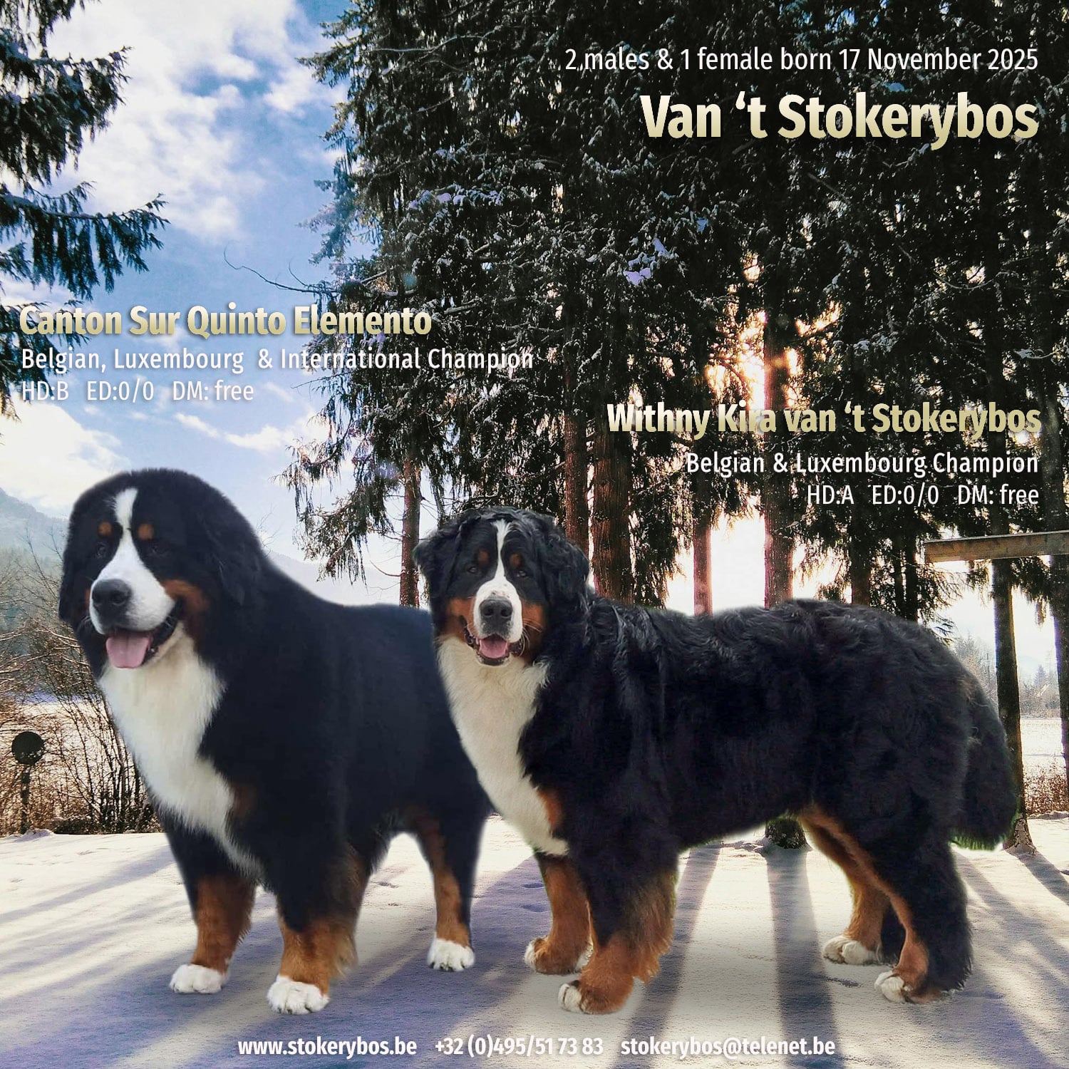 2 males & 1 female born 17 November 2025 out of Canon Sur Quinto Elementa & Withny Kira van 't Stokerybos